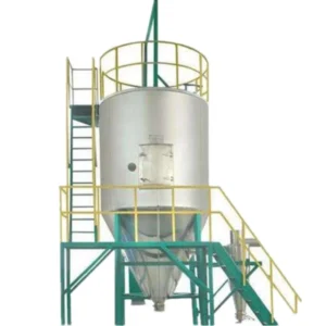 1. Rapid drying speed.The surface area of the material will be enlarged greatly when liquid raw material is atomized and 95% – 98% of water can be evaporated instantly in the hot airflow. The drying time only need to take several seconds. This dryer is especially suitable for heating sen sitive material.