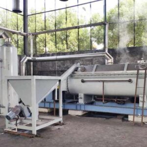 KJG空心桨叶干燥机是一种接触式干燥机. 烘干机机身上有外套, 空心叶片牢固地焊接在两个空心轴上, 填充加热介质 (可能是热水, 蒸汽或导热油) 在他们中, 湿原料被加热, 干燥并由两根轴驱动向前. 它可以由一到四个轴组成, 整个操作将在封闭或部分封闭的环境中完成.